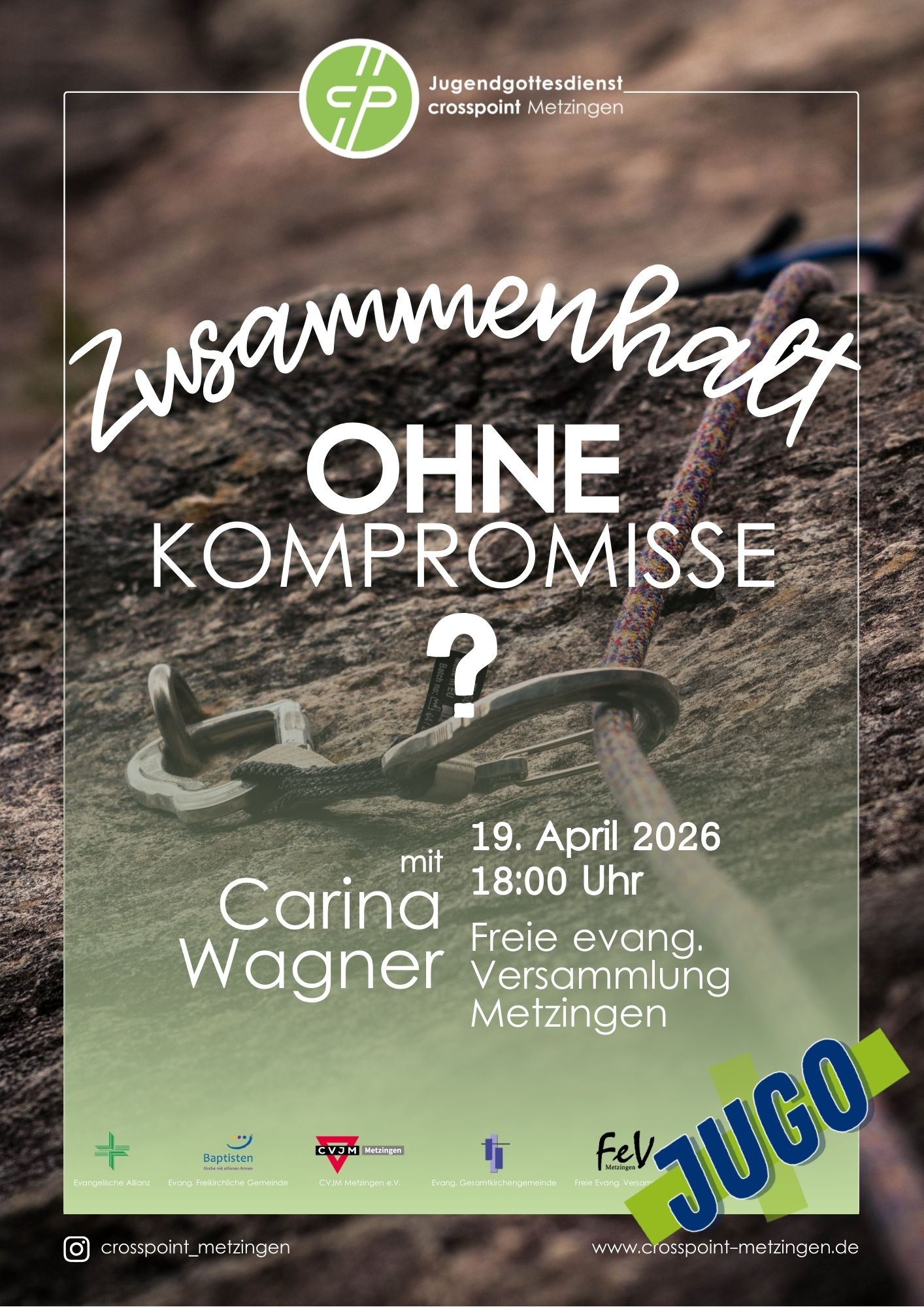 Vorbereitet und durchgeführt wird dieser Jugo durch Mitarbeitende des Jugendgottesdienstteams Crosspoint aus Metzingen, die sich ein buntes und tolles Programm überlegt haben.Die Predigt zum Thema „Zusammenhalt – ohne Kompromisse?“ wird Carina Wagner halten, die aus Metzingen stammt und ihre Ausbildung zur Jugendreferentin in Adelshofen absolviert hat.